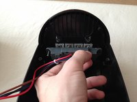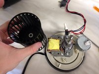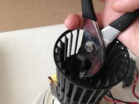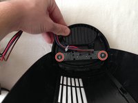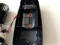 Once you have the fan apart, in order to get more maneuverability, the wire attached to the motor needs to be loosened. This can be done by removing the two screws highlighted in red.