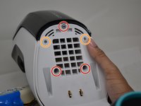 Remove the four 16 mm Phillips #2 screws at the back of the vacuum and below the clean water tank.