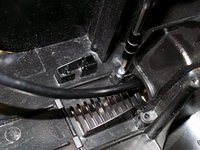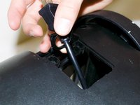 Remove grate that holds the power cord as pictured.