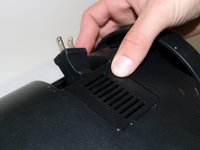 Turn vacuum around and locate the filter cover on the bottom.