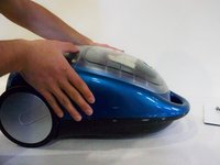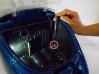 Unscrew the two screws underneath the dirt collection box inside the vacuum.