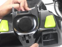Remove the dust tank, so the vacuum can lie upside down easily.