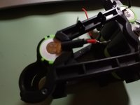Put the right half of the carrier over the batteries and slide into place. Do not put in the screws, yet, you still need to put in the button and the electronics. 028