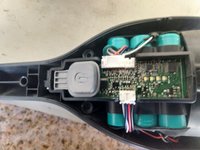 Split battery carrier slightly and slip in electronics board 042 Align button and squeeze together battery carrier. Screw battery carrier together with three (3) screws Attach motor with two (2) screws