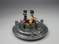 Remove the non-spring portion of the hotplate by lifting it up, exposing the spring and brass locking latch underneath.