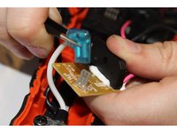 There will be one black wire, a thin white wire and a thin red wire connecting to the trigger module from the circuit board. Using your needle nose tweezers insert one of the ends into the release slot below the white wire.