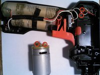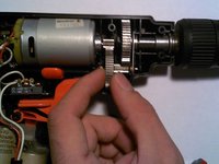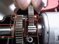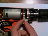 Put the drill head back into where it originally was secured. Make sure it lines up with the molding of the plastic housing. Move the second large gear into where it locks into the motor gear.