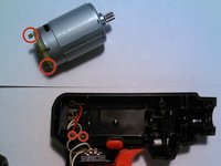 Pull out the motor and lay it next to the drill; keep in mind that the white and red wires will still be attached to the motor.
