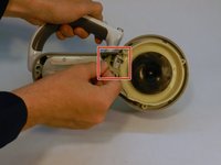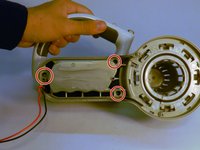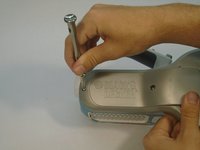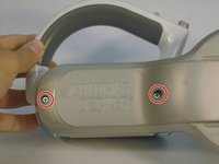 • Turn the vacuum around until you see the company logo. Once we are there remove the two screws on the vacuum.