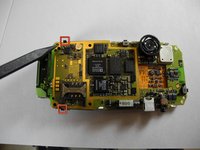 Take the new screen and slip the flexible piece of connecting circuitry under the grey plastic flap that you pried up in step 10.