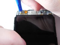 Gently pry up the ribbon connector at the top of the phone with a plastic opening tool.