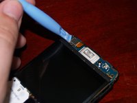 • Just once piece left to remove, the media card slot. Gently lift the ribbon cable up, and pry the small metal piece up from the lower case using your fingernails.