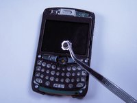 Use a spudger to pry off the plastic ring surrounding the trackball.
