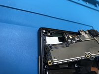 I marked in red all the flex cables connected on the motherboard. You got to remove them all.