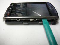 Turn the Blackberry Storm 9500 around and pry off the microphone cover at the top using a safe pry tool.