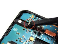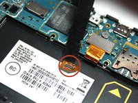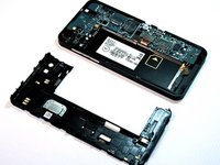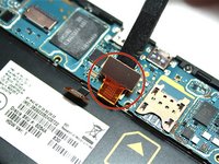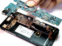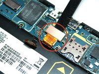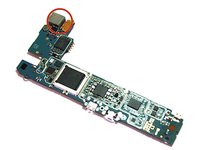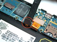 • Now that the motherboard is flipped over, the rear camera is visible.
