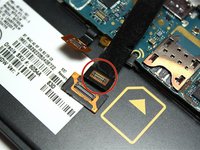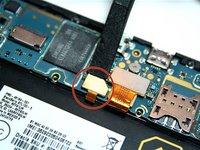 • To disconnect the rear camera from the motherboard, carefully lift up the gold-plated connector. It is located just below the rear camera.