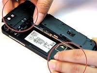 • Start from the bottom and work your fingers up along the sides of the phone until the back cover is completely separated from the body of the phone.