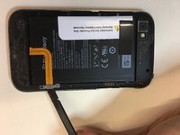 Once all the clips are released around the edge of the cover, you will need to use a guitar pick to cut through adhesive on the top and bottom of the cover. Take care not to cut through the battery ribbon cable. The top adhesive is behind the glass feature on the back cover. You may need to apply some heat.
