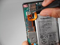 Remove the two 3.3 mm T4 Torx screws that secure the battery connector.