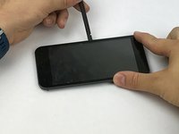 Using the spudger, begin to gently remove the adhesive around the screen.
