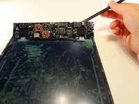Gently lift the motherboard with a spudger or small object by inserting it in the seam between the back frame and the motherboard.