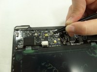 With a spudger, press against the lip of the connector closest to the wires to remove the battery connector from the motherboard.