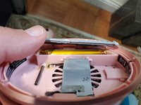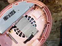 Inside is only a battery! It takes about 15 minutes of glue scraping to pry this off carefully. Not worth it unless you need to replace the battery.