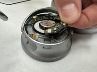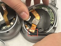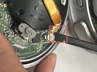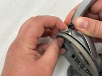 Detach the silver cover piece on the outside of the headset using the black stick spudger.