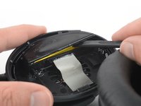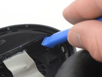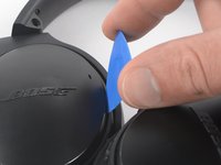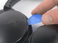 Use the opening pick to pry up the plastic cover of the left earcup.