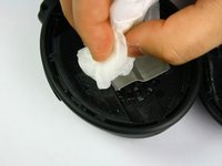 Using your fingernail or a spudger, to scrape away remnants of the scrim mat from both sides of the plastic earcup.