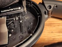 These Bose headphones have a power slider on the bottom shell in the picture. After 3 or so years, the slider no longer engages, and after disassembly it can be seen that a part of the slider has broken off. This can be fixed with glue and a heat-shrink tube.