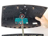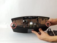Rotate the speaker to its side and remove the (2) two 1.5 cm screws circled in picture 2. Remove these screws on either side of the speaker.