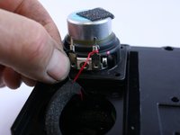 • With the bottom of the speaker exposed, unwind the wires from the connection tabs and replace the speaker.
