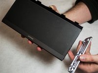 Using a tool such as a spudger or plastic opening tool, insert the end into one of the small indentations located on the back of the speaker. Start either on the indentation farthest to the right or to the left.