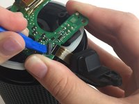 Remove the two screws connecting the motherboard to the bottom cover of the speaker.