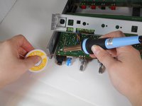 Take care to avoid damaging the circuit board during de-soldering, and ensure the unit is unplugged and powered off before starting. Follow the steps carefully to complete the replacement safely and effectively.