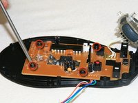 Use the Phillips #1 screwdriver to remove four 5 mm screws from the bottom of the mouse.