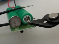 Use a plier to pry off the battery contact tab which is soldered onto the battery. Repeat the same step for all 4 battery contact tabs (two on each side of the battery holder).