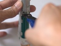 With flat screw driver, slide down along the case. Gently push both plastic tab toward the center