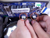 Locating the two screws on either side of the motherboard, unscrew the two 8 mm Phillips head screws using a J1 Phillips head screw driver.
