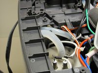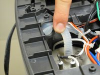 Remove the power cord from the groove. (the black cord that leads into the green wire.)