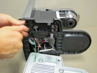 Remove the power cord from the groove. (the black cord that leads into the green wire.)