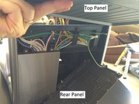 Now remove the two phillips screws from the bottom of the rear panel, remembering that the longer screw is on the left and the shorter is on the right