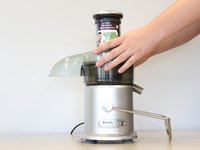 Place the juicer on a flat surface. Make sure the juicer is unplugged and in the "off" position. For the following steps, the pulp basket is on the left.