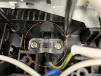 • Although the plastic casing of the transformer has been detached there is still a small piece of plastic holding down the connected wires of the transformer.