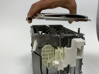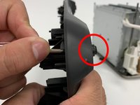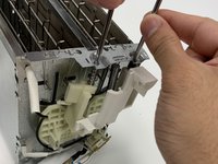 • Now that the latch is open you can remove the final wire attached to the plastic part. This concludes the teardown of removable parts within the toaster.