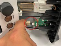 • Once this screw is removed the circuit board can be detached from the base of the toaster as shown.