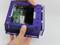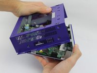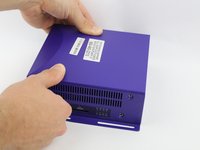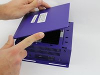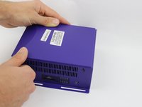 Press down on the top cover of the device and slid it towards you until you see a slight gap created.