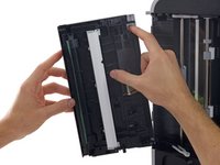 Remove the two 15 mm Phillips #1 screws securing the ADF at the rear of the fax machine.